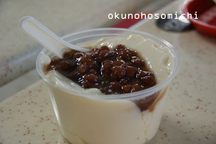 やわらかい豆腐に甘いシロップなどをかけたようなもの。