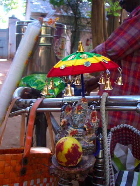 自転車チャイ屋さんの自転車についたミニ祭壇。