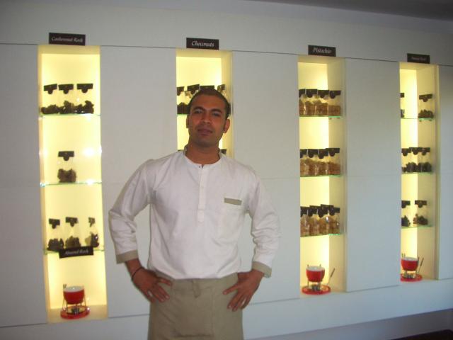壁に作られている棚にはチョコでコーティングしたナッツ類や、お菓子用の