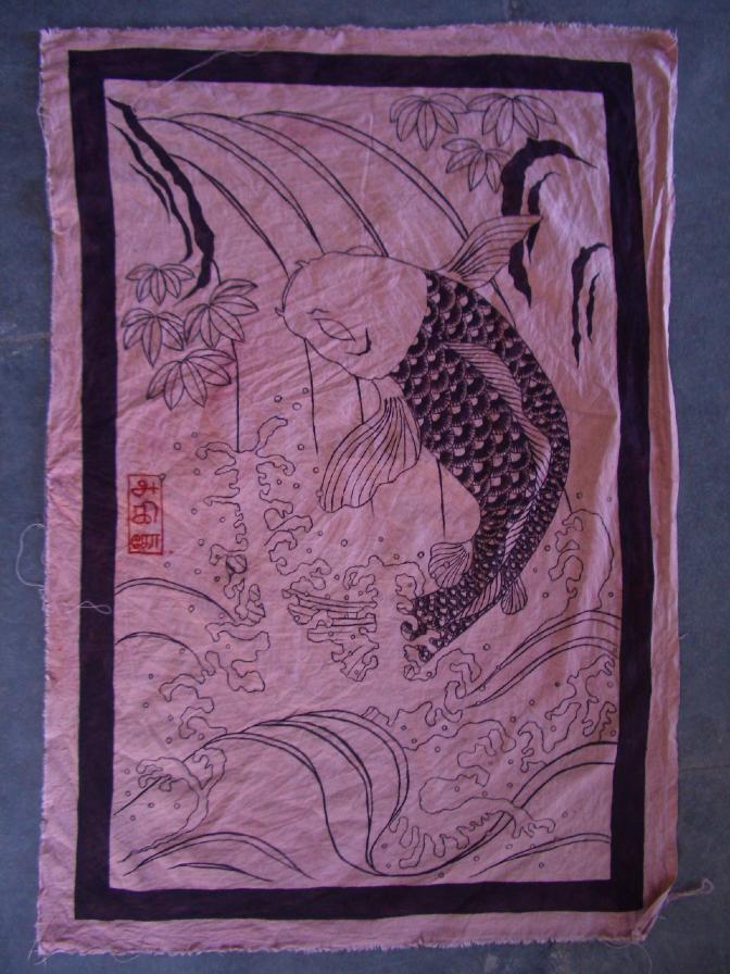 これからこの登り鯉の絵に色(黄・青・緑)をつけていくわけなのだが、
