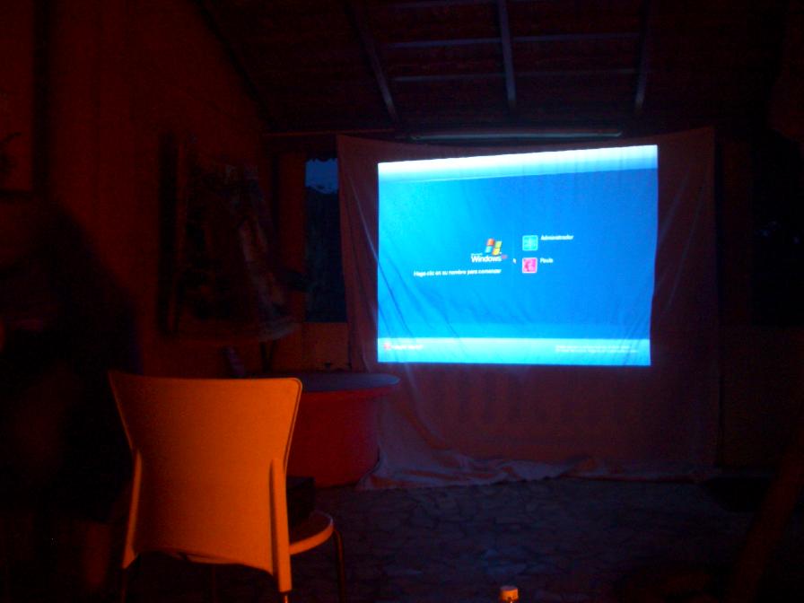 白い布のスクリーンと、パソコンにつないだプロジェクター。