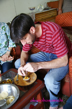 大男が作る小さなサモサ。