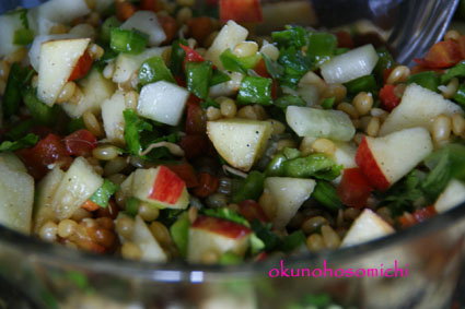 右下:リンゴと大麦のサラダ