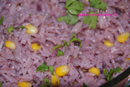 左下:紫キャベツプラオ(炊き込みご飯のようなもの)