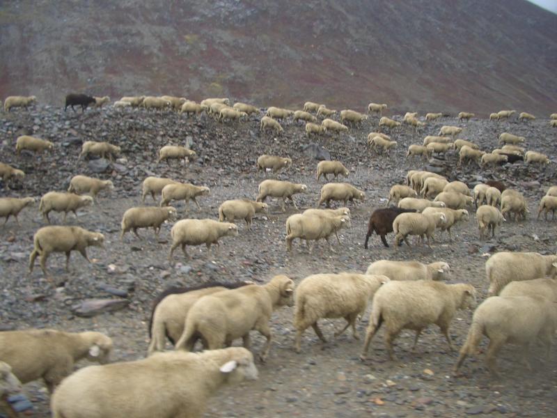 時々、羊の団体さんに出くわします。