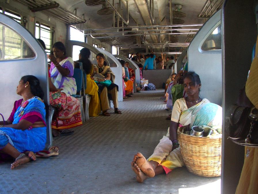 床に座ったおばちゃんがのどかな車内風景を演出中。