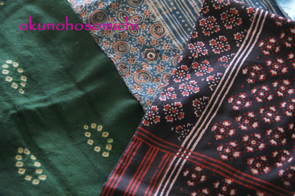 ブロックプリントのドゥッパッタと絞り染めのウールマフラー。
