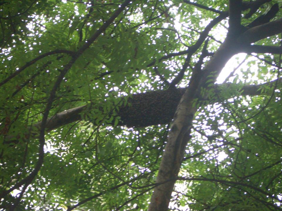 近づいて見てみると、なんとそれはハチの巣で、まわりを飛んでいるのは