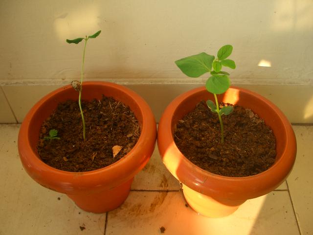 日本から持って帰って来てすぐに植えた枝豆とシソの種。