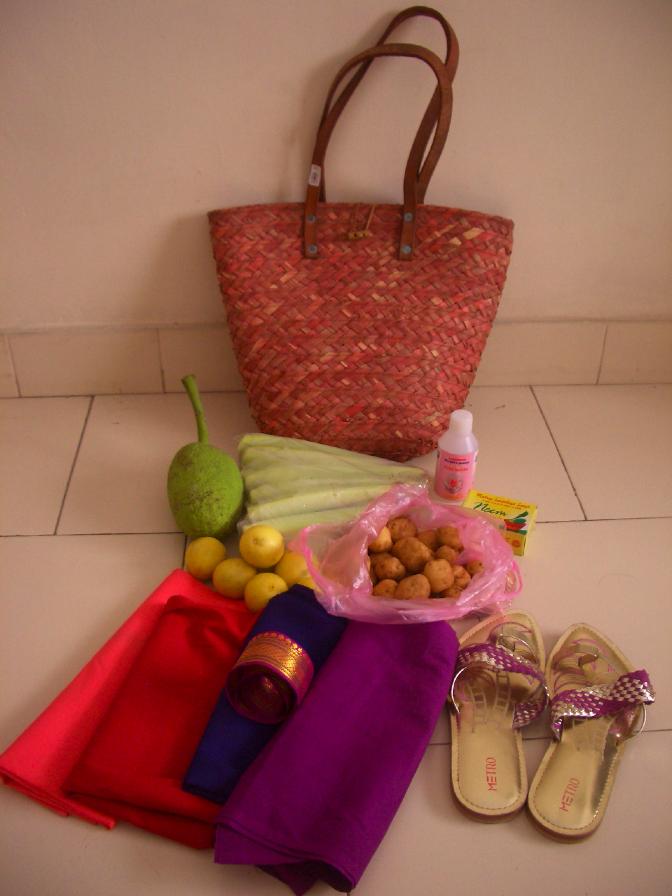 Sundari Silkでヤシの葉バッグ、ベビーコーンとベビーポテト、レモン、