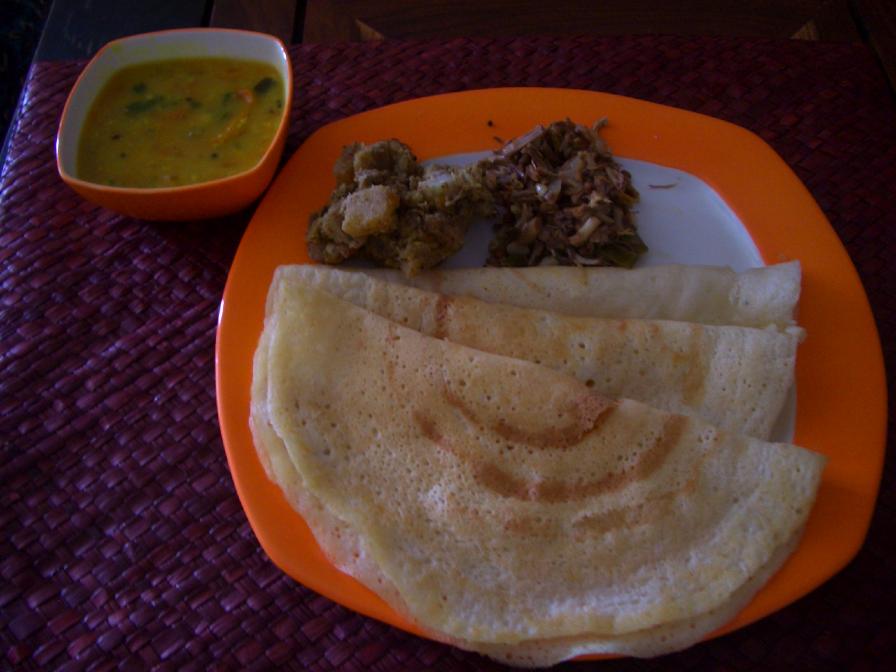 ドーサとともに。左上黄色いのは豆カレー、ダール。