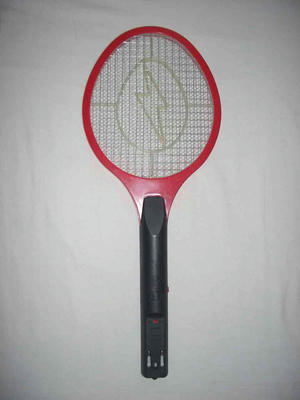 飛び回っている蚊にあてて電流でビリビリさせて退治するラケットです。
